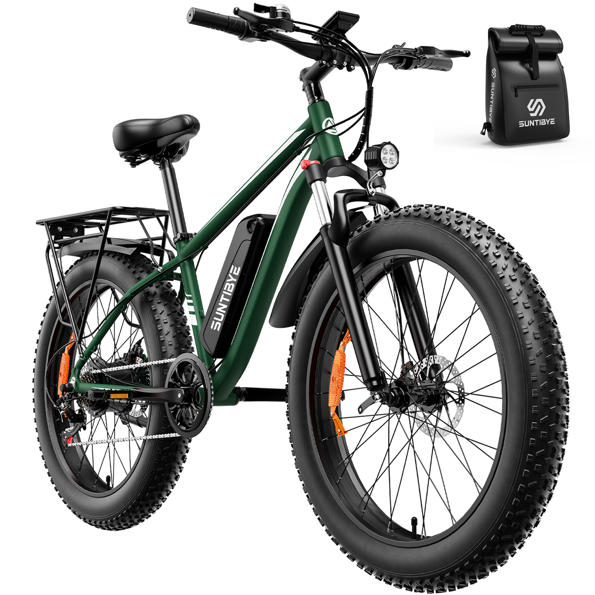 SUNTIBYE EB26 Electric Bike 26" Fat Tire Ebike for Adults, 65miles / 28mph Peak 1500W E-mountain Bicycle,48V 15Ah UL2849, Green